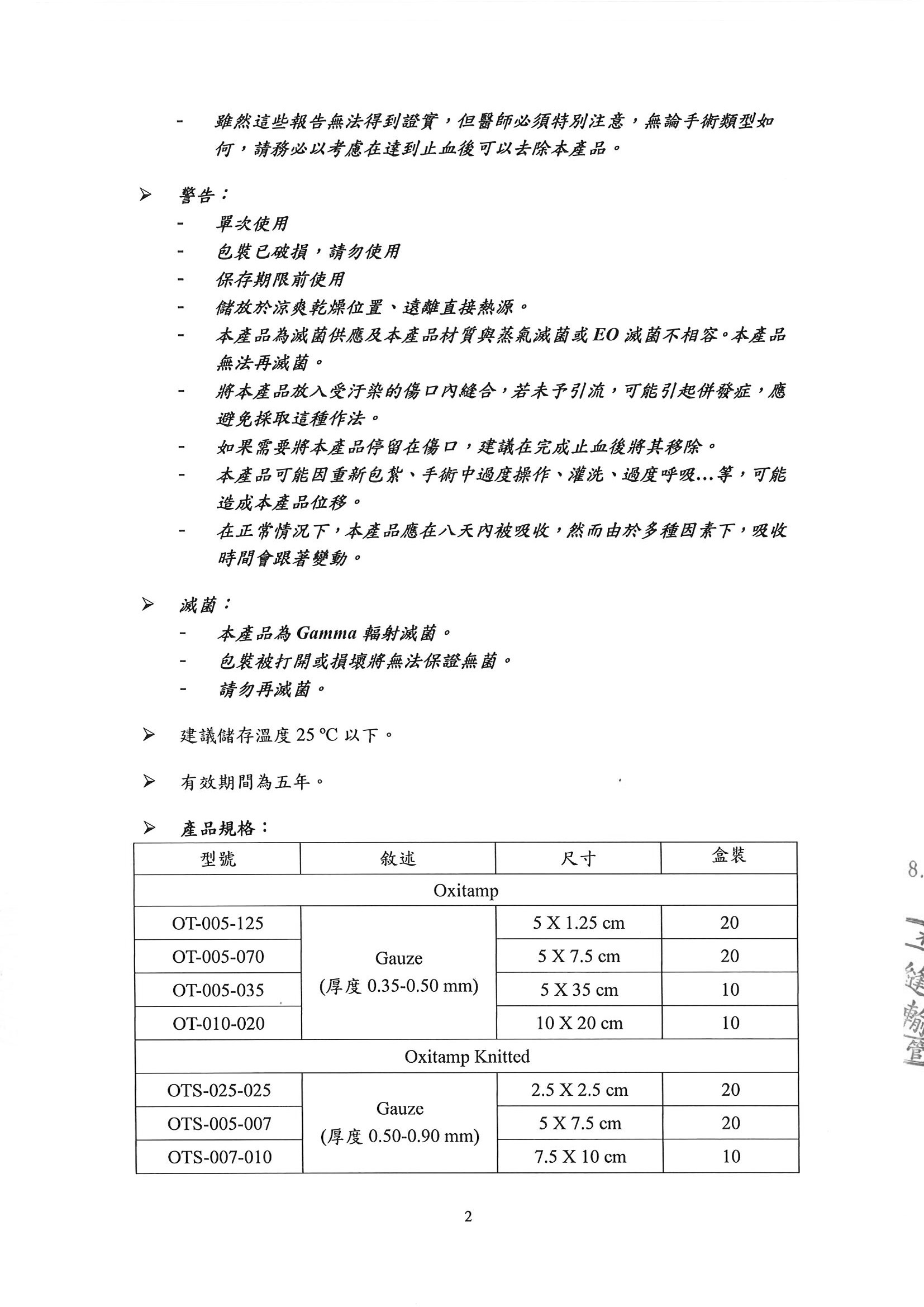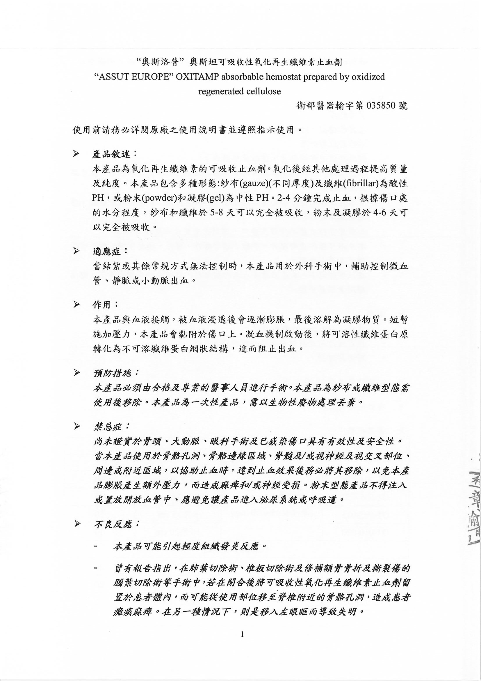 奧斯洛普 奧斯坦可吸收性氧化再生纖維素止血劑_衛部醫器輸字第035850號_V2_2023.8.23